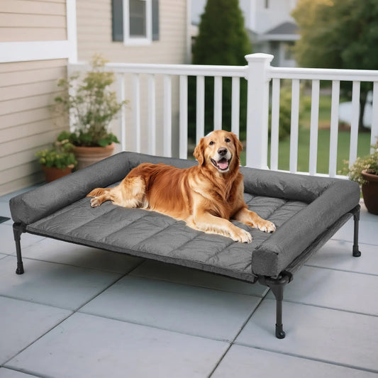 Ultimate Comfort! ️ Veehoo Elevated Pet Bed with Soft Bolster Cushion | Anxiety Relief Calming Dog Couch | Deep Sleep Elevated Cot with Breathable Mesh